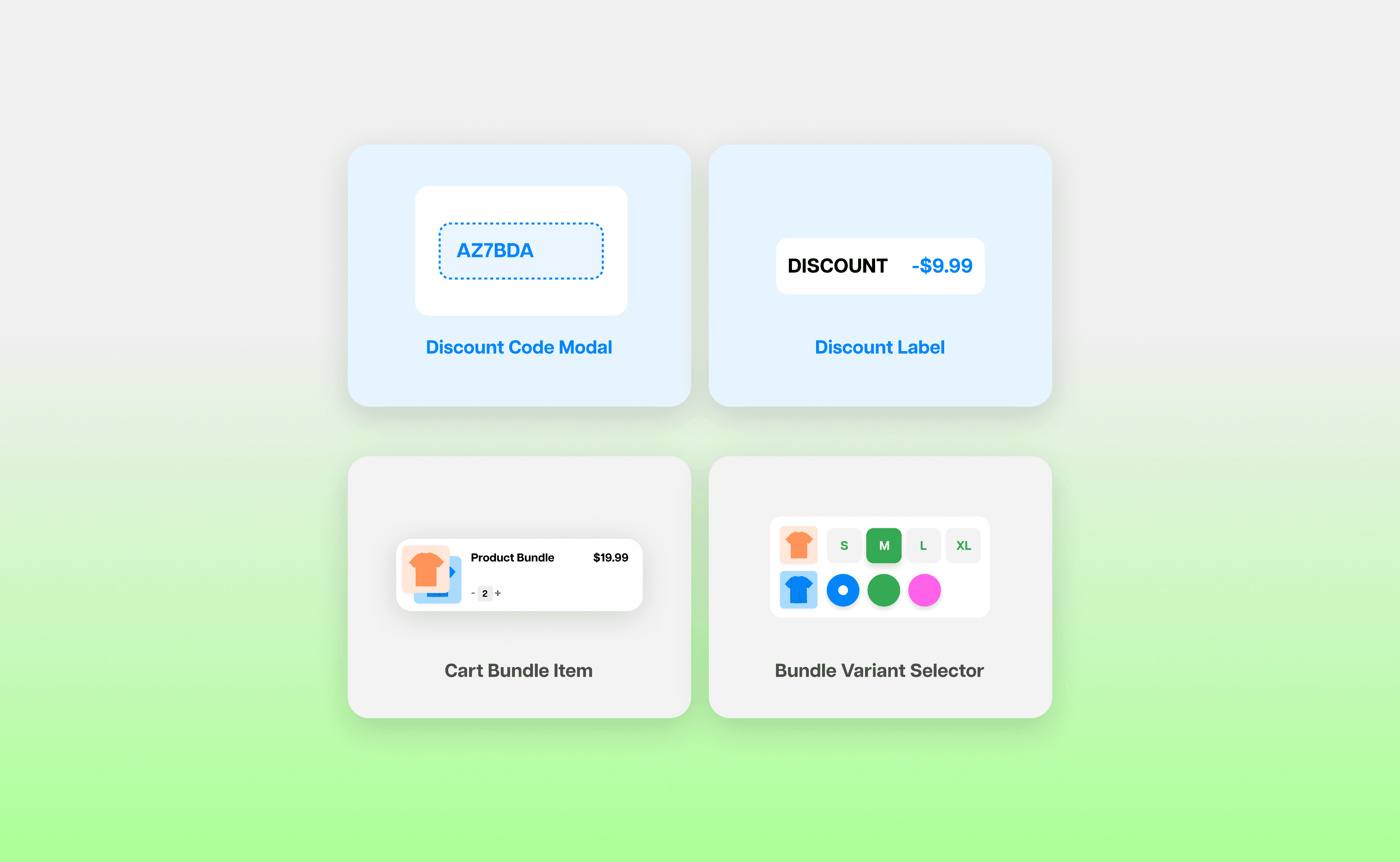 Bundles: Allow customers to pick and choose different variants to create a bundle, allowing for better sale price and higher spend. Powered by Shopify's native Bundle app.