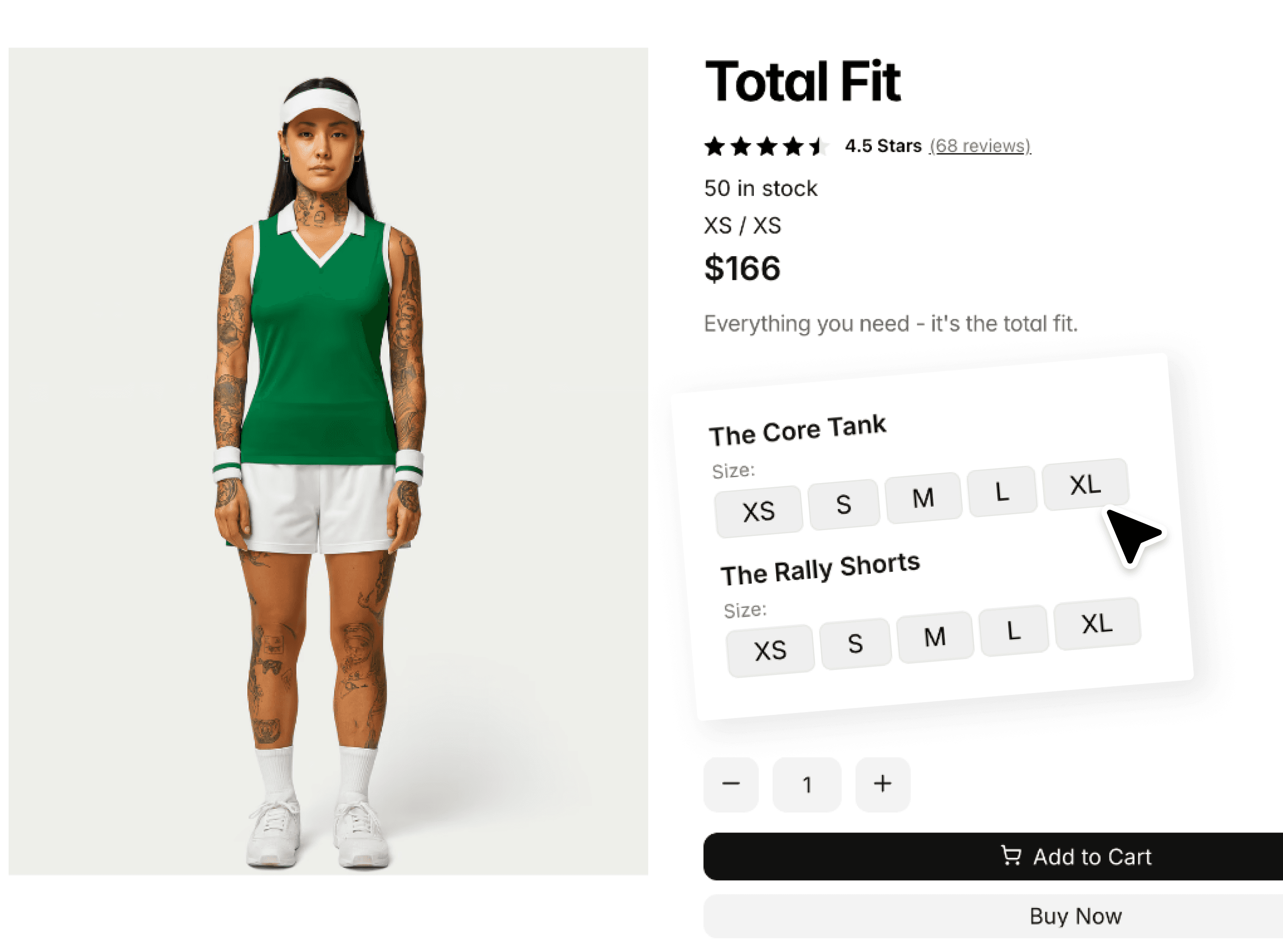 Display product bundles & let customers shop multiple products in one — with full variant selection per item.